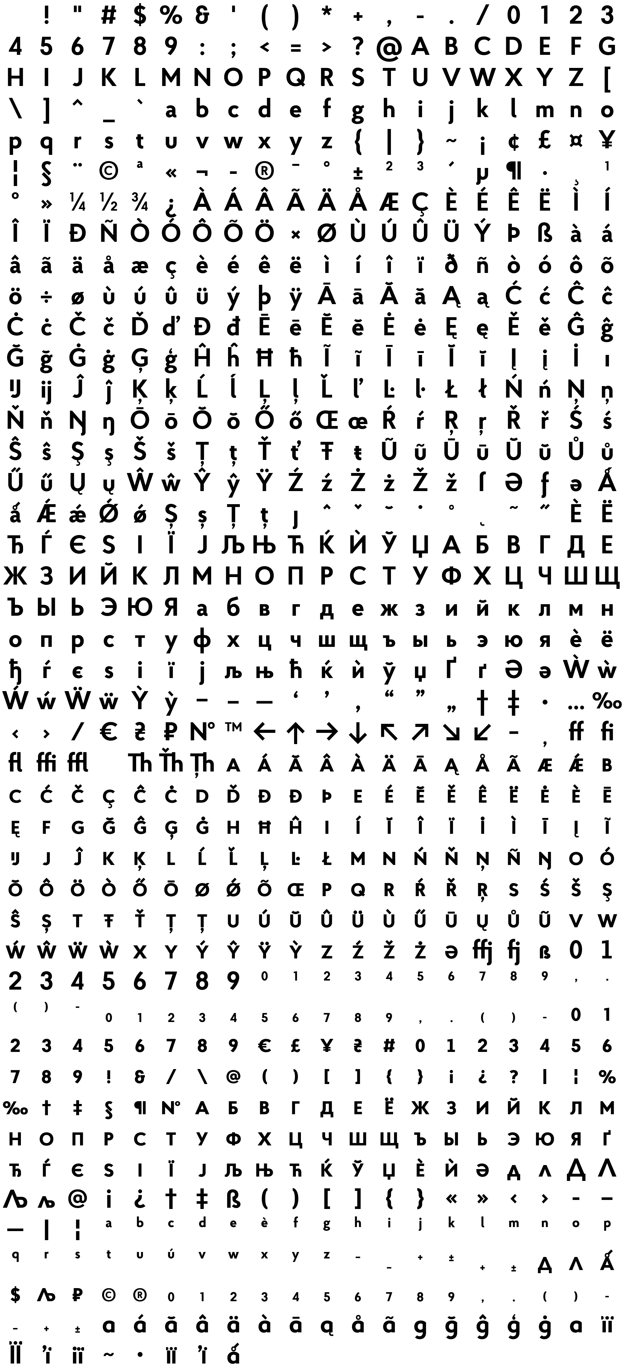 Due to the nature of thumbs' generation process, some of the glyphs in the glyph map may appear cropped.