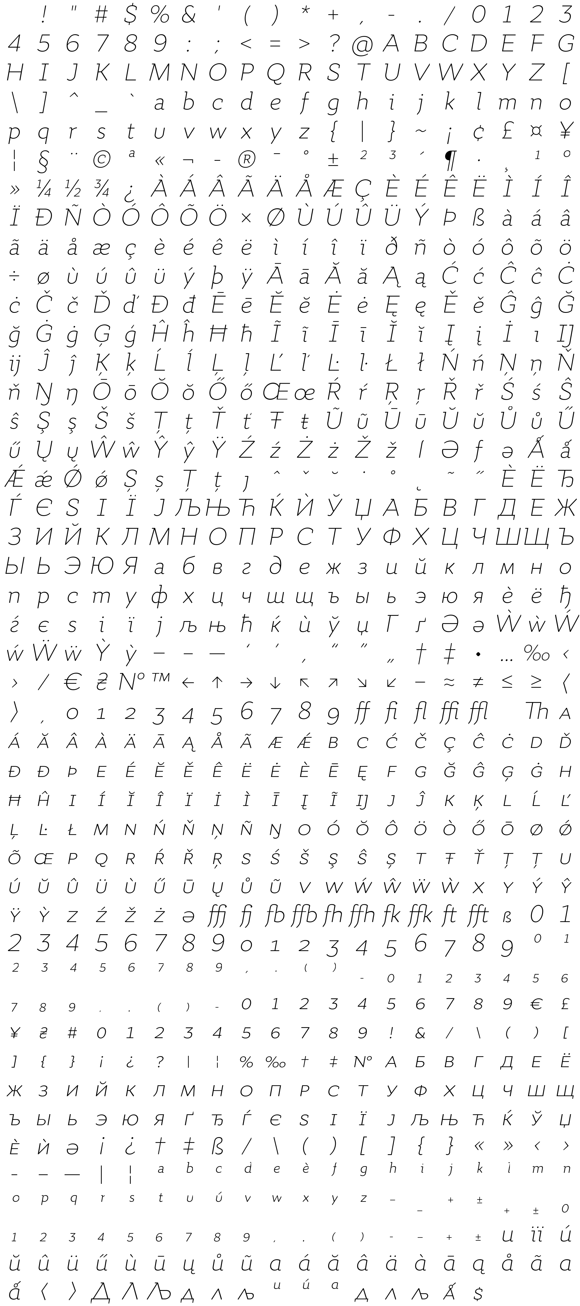 Due to the nature of thumbs' generation process, some of the glyphs in the glyph map may appear cropped.