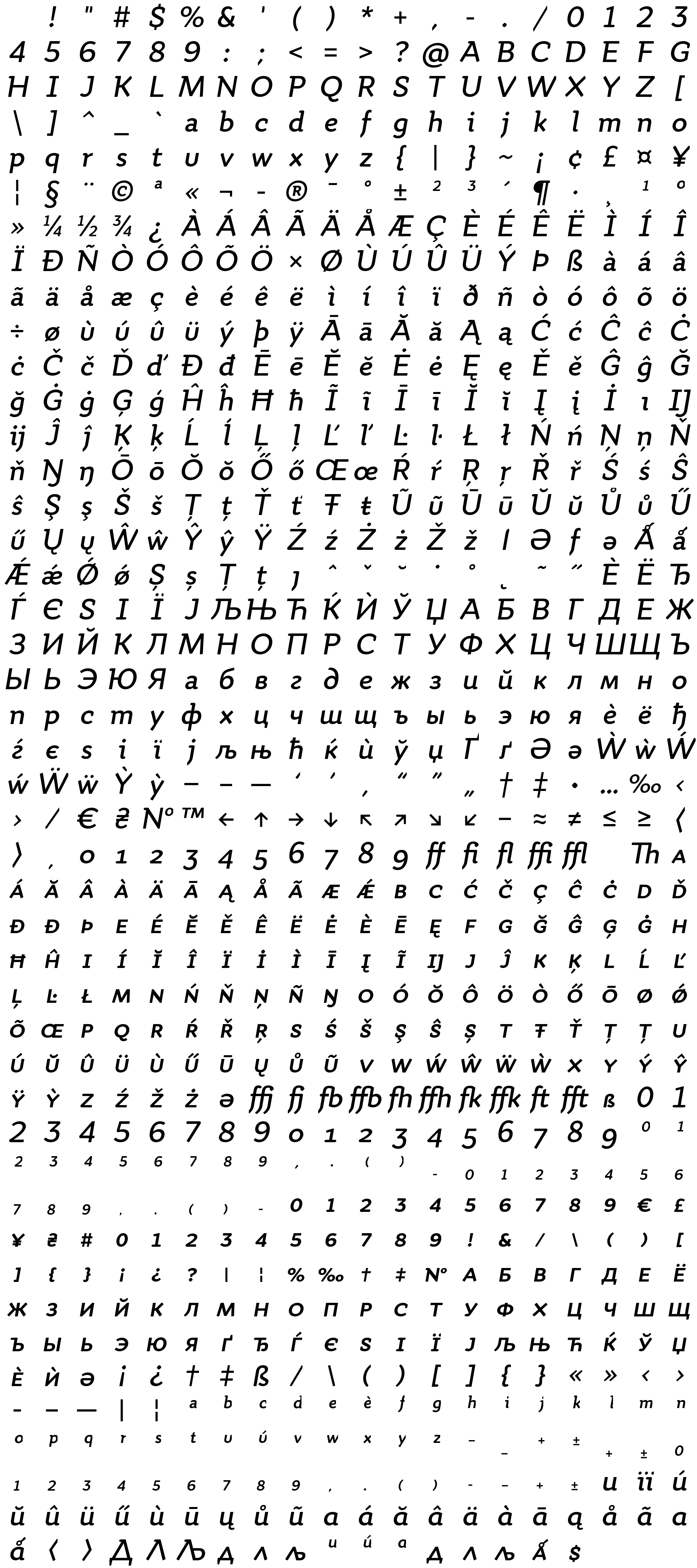 Due to the nature of thumbs' generation process, some of the glyphs in the glyph map may appear cropped.