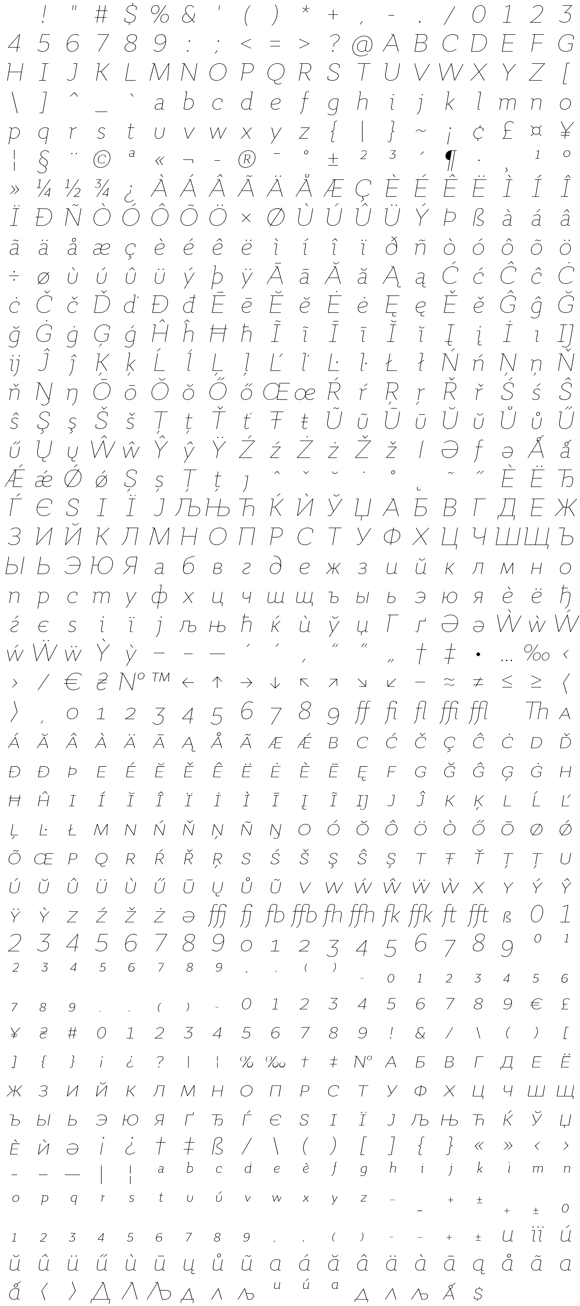 Due to the nature of thumbs' generation process, some of the glyphs in the glyph map may appear cropped.