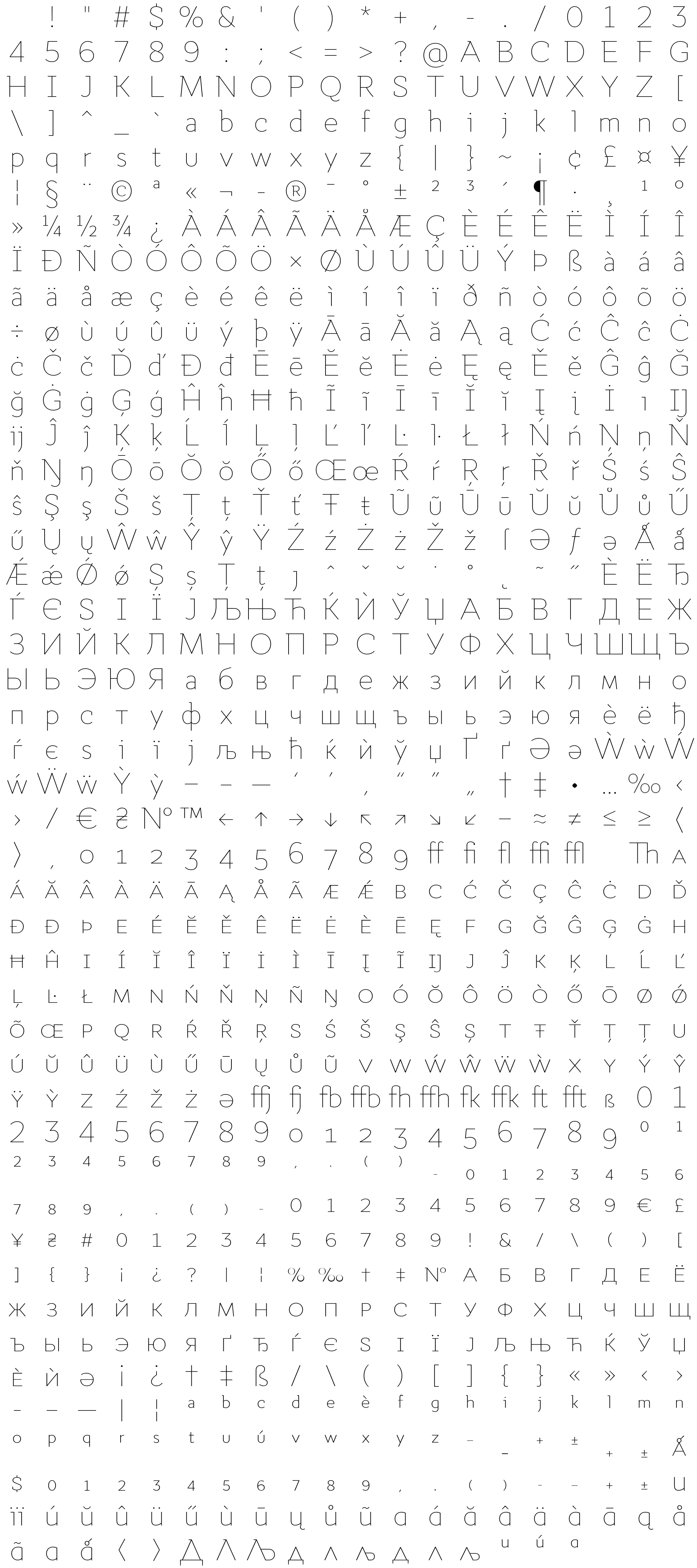 Due to the nature of thumbs' generation process, some of the glyphs in the glyph map may appear cropped.