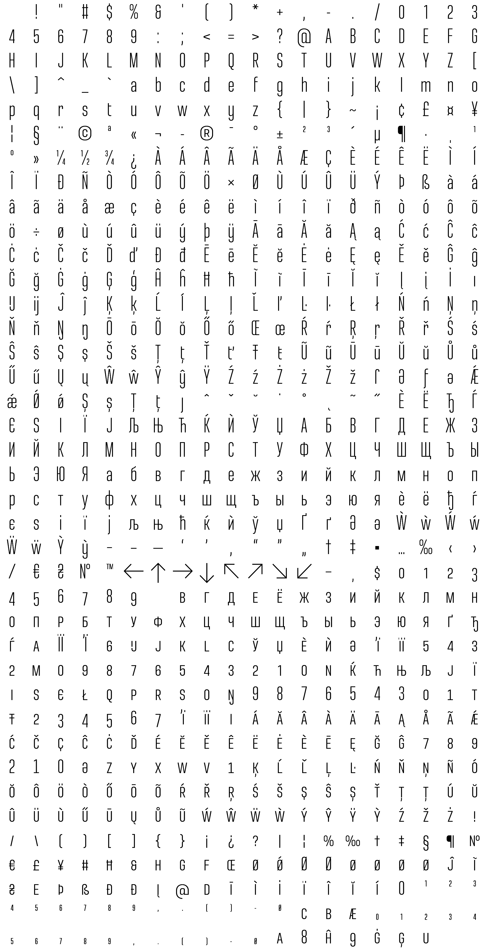 Due to the nature of thumbs' generation process, some of the glyphs in the glyph map may appear cropped.