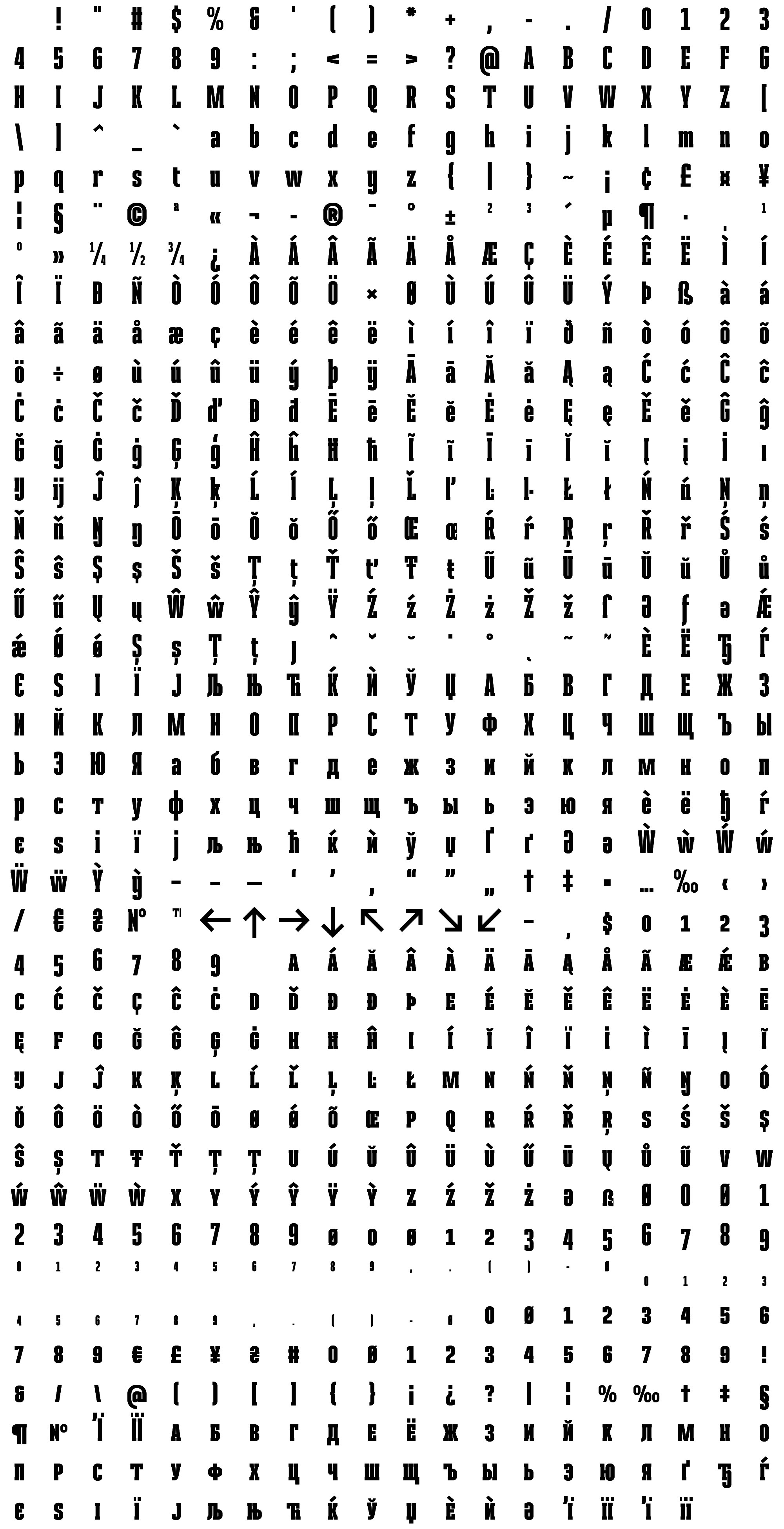 Due to the nature of thumbs' generation process, some of the glyphs in the glyph map may appear cropped.