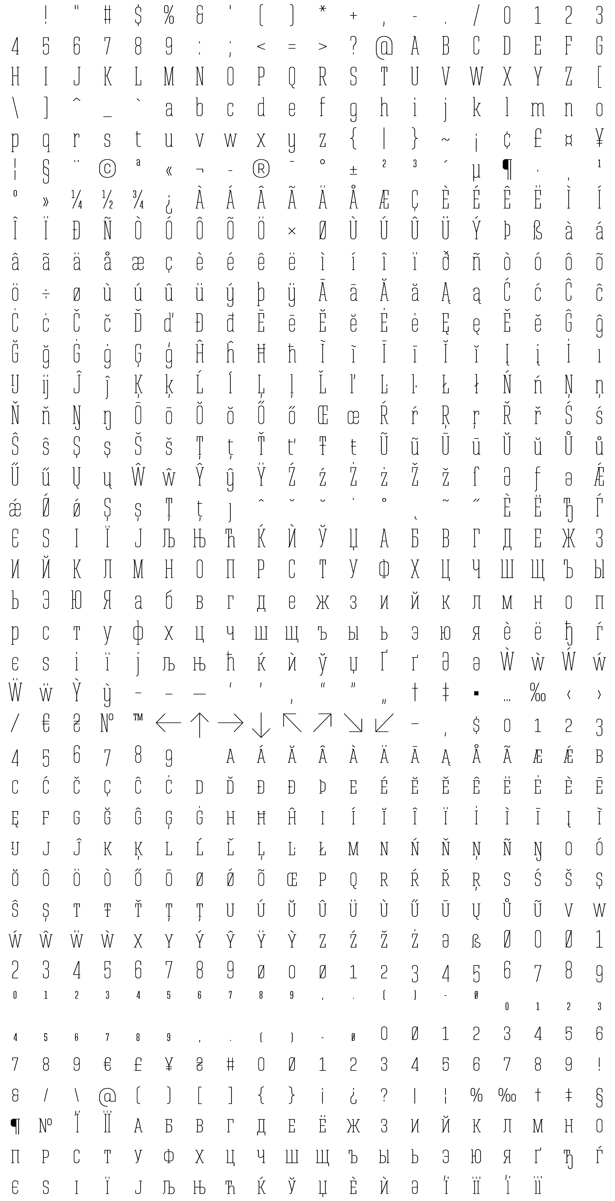 Due to the nature of thumbs' generation process, some of the glyphs in the glyph map may appear cropped.