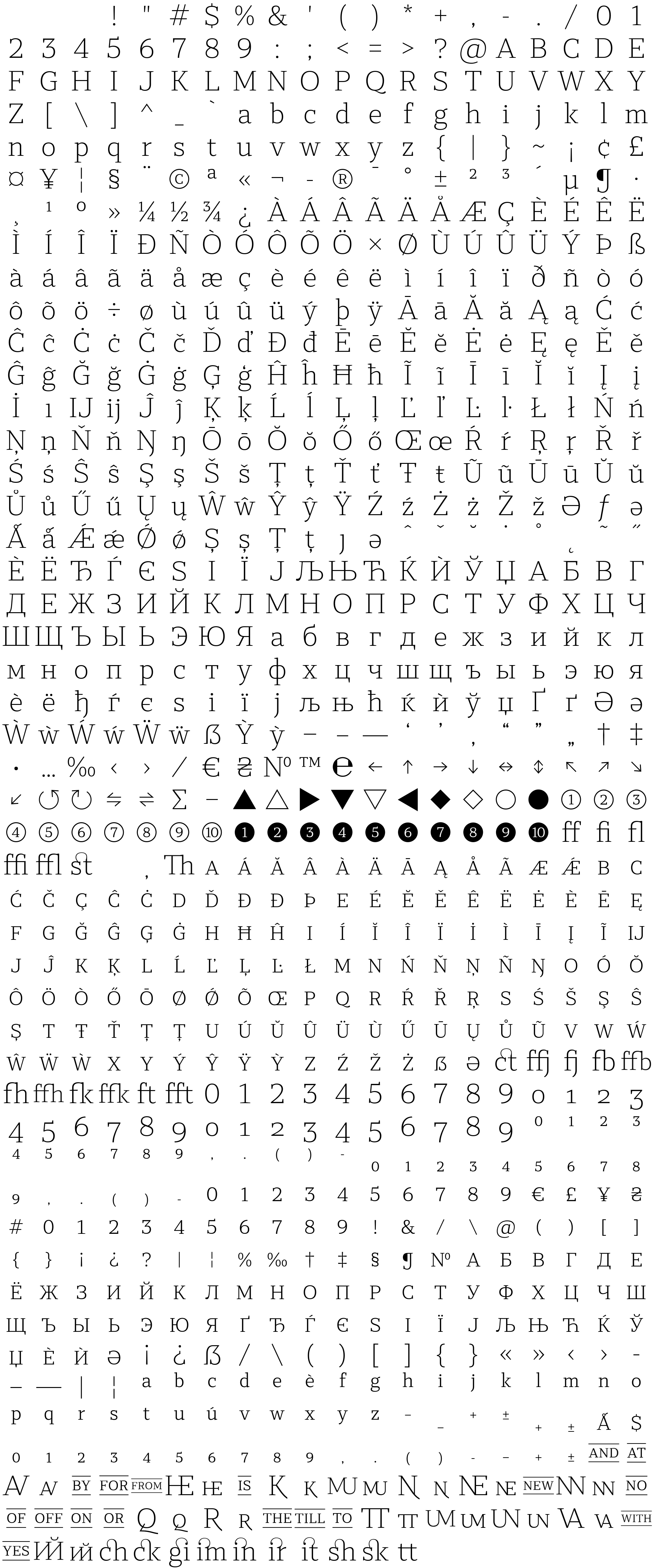 Due to the nature of thumbs' generation process, some of the glyphs in the glyph map may appear cropped.