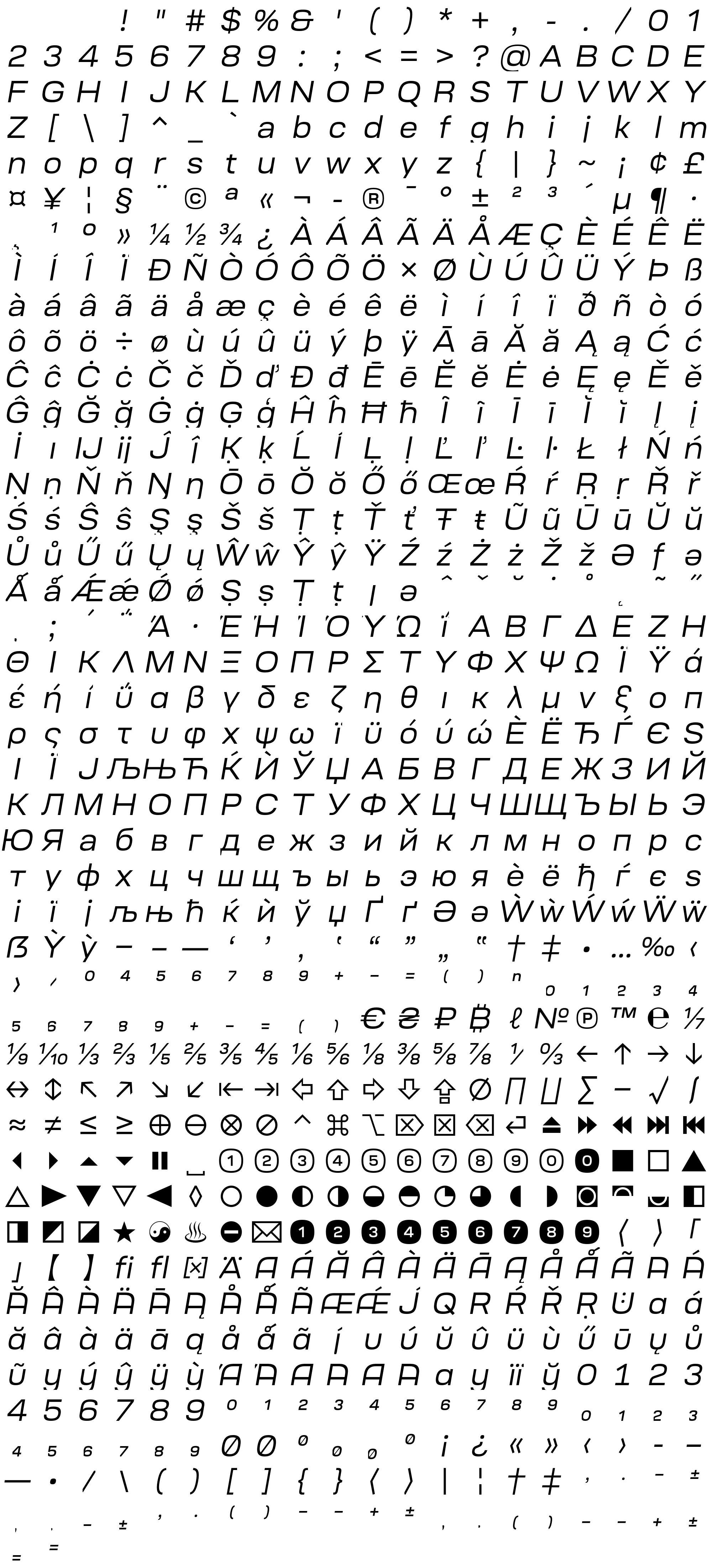 Due to the nature of thumbs' generation process, some of the glyphs in the glyph map may appear cropped.