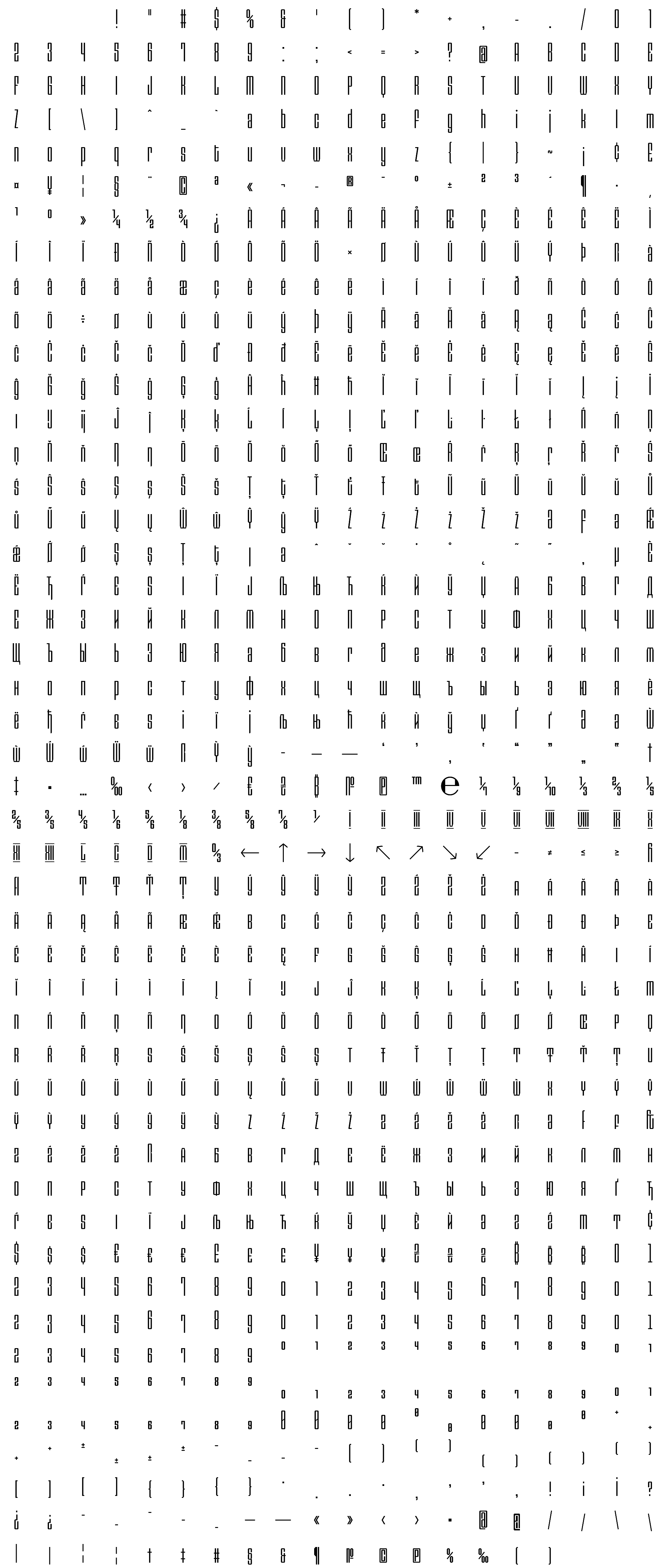 Due to the nature of thumbs' generation process, some of the glyphs in the glyph map may appear cropped.