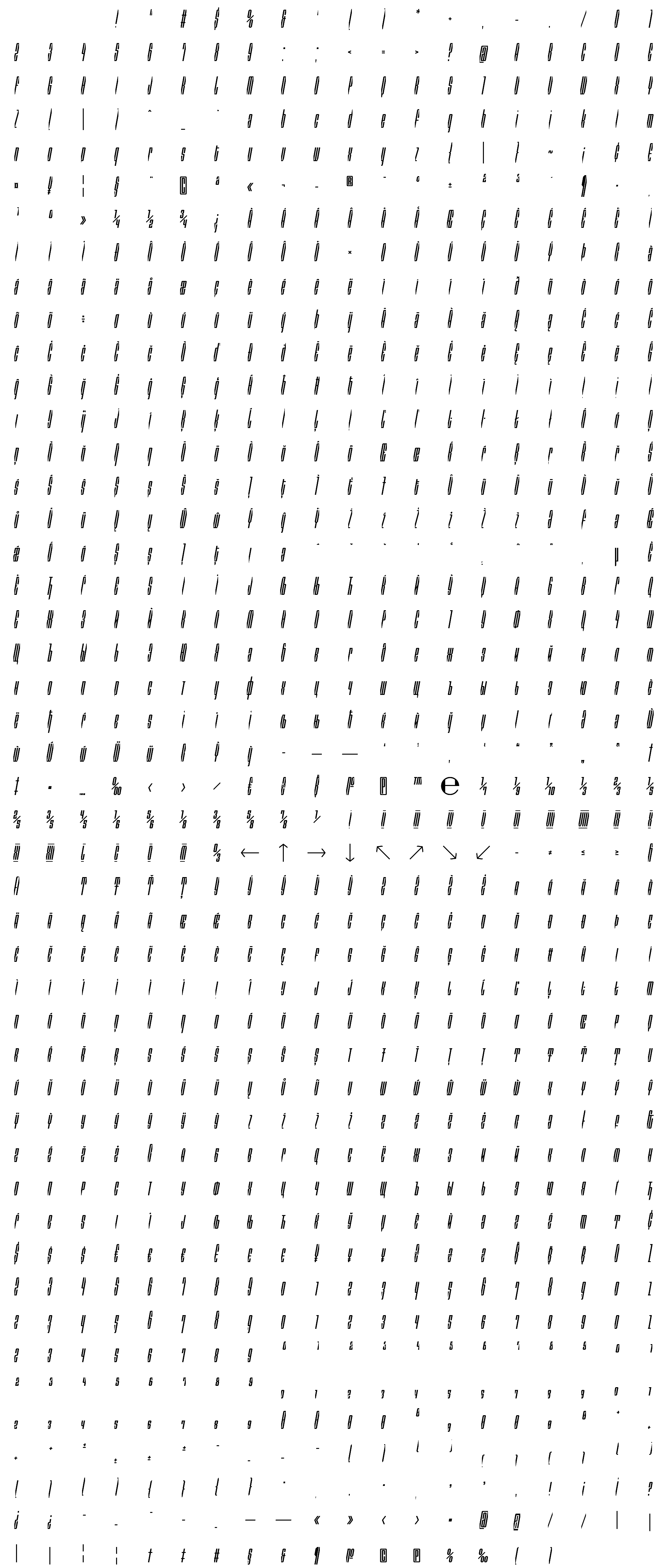 Due to the nature of thumbs' generation process, some of the glyphs in the glyph map may appear cropped.