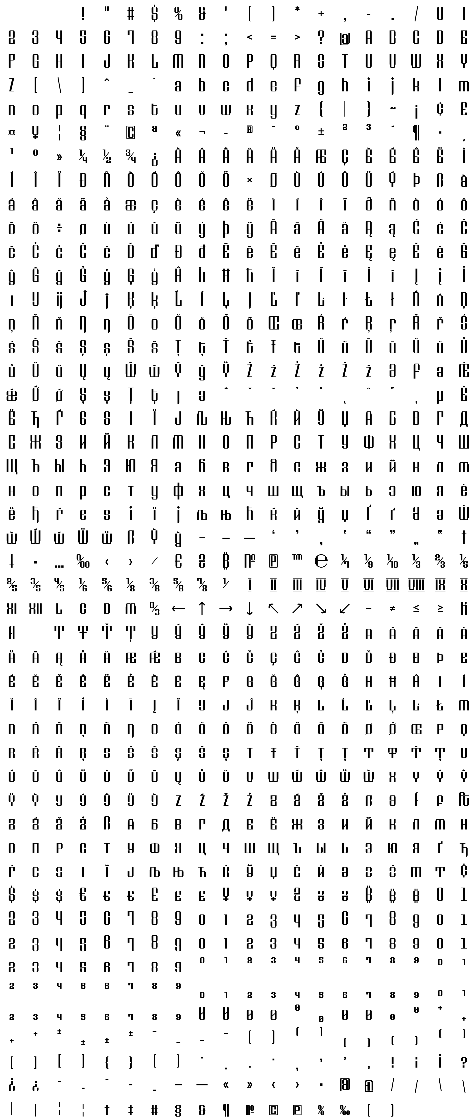 Due to the nature of thumbs' generation process, some of the glyphs in the glyph map may appear cropped.
