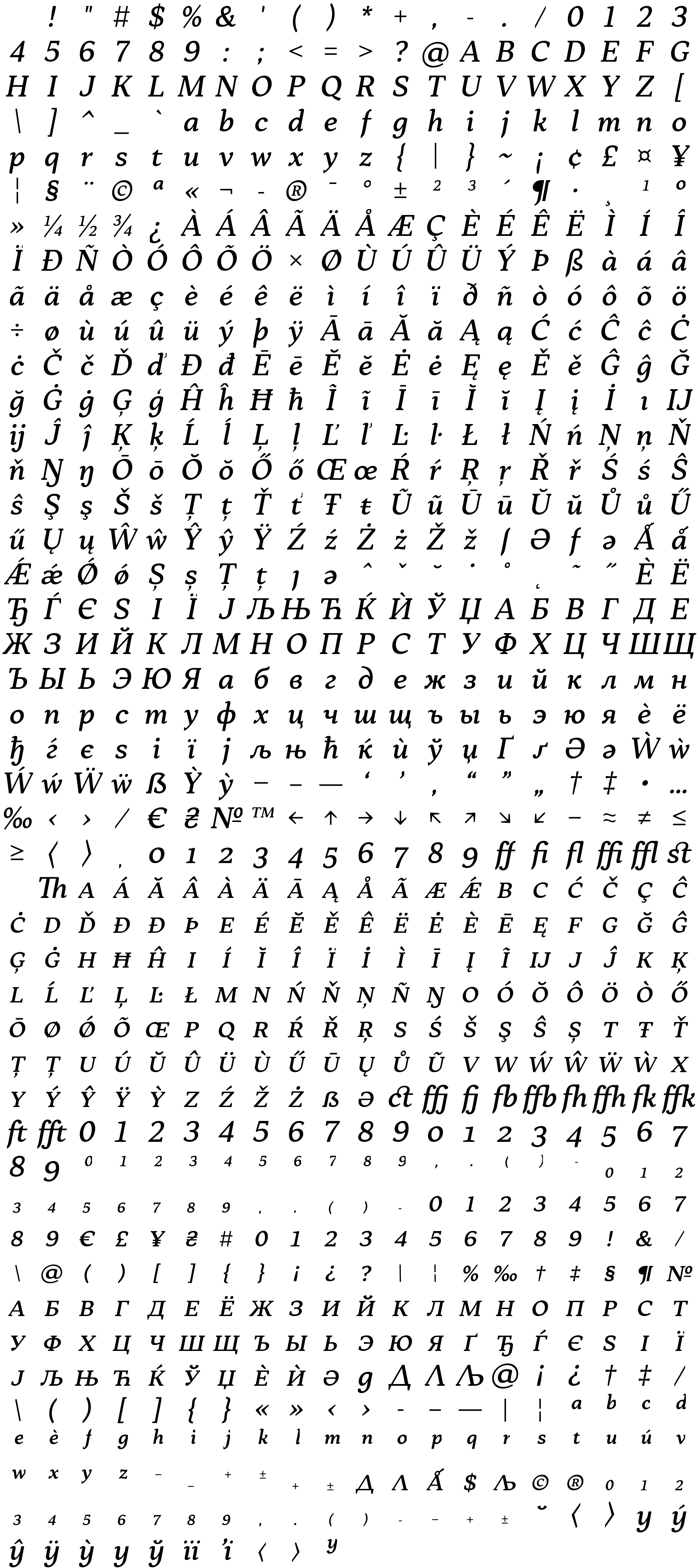 Due to the nature of thumbs' generation process, some of the glyphs in the glyph map may appear cropped.