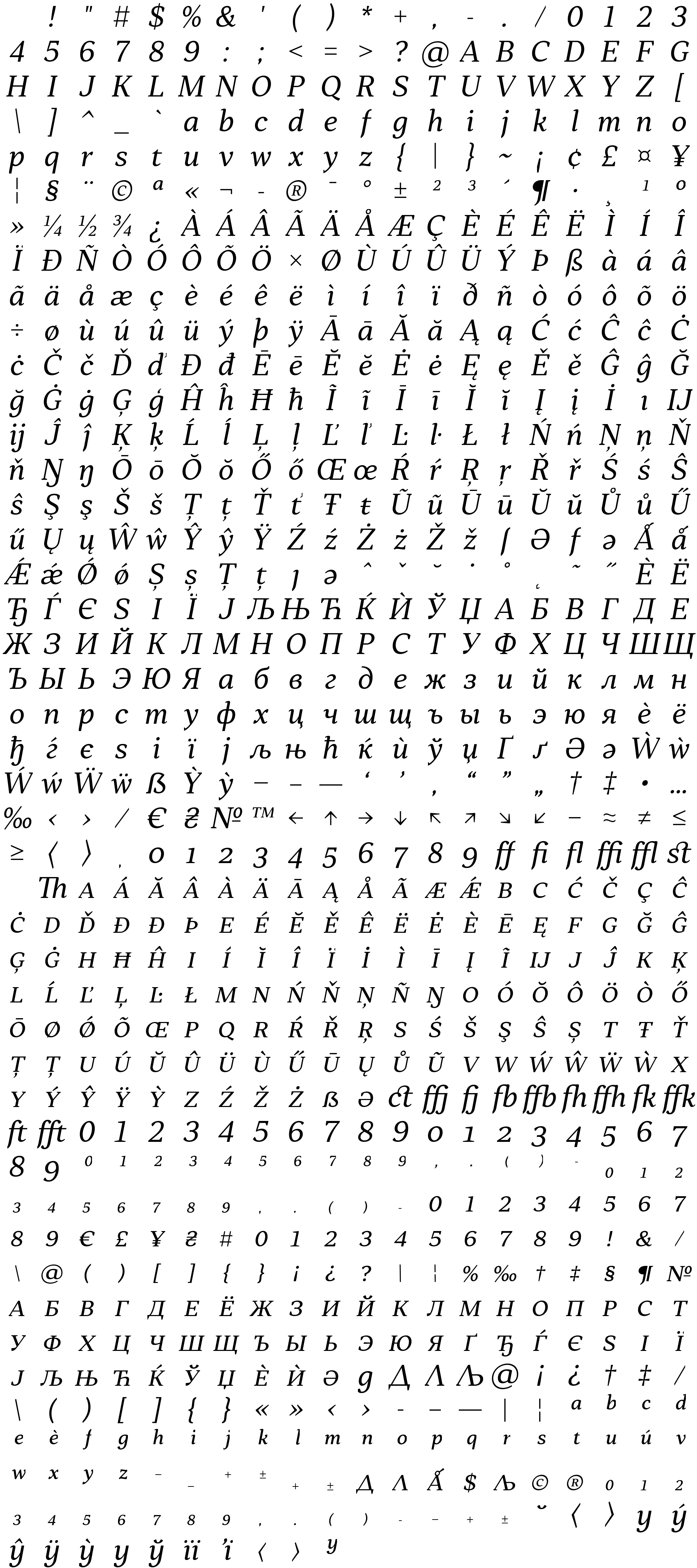 Due to the nature of thumbs' generation process, some of the glyphs in the glyph map may appear cropped.