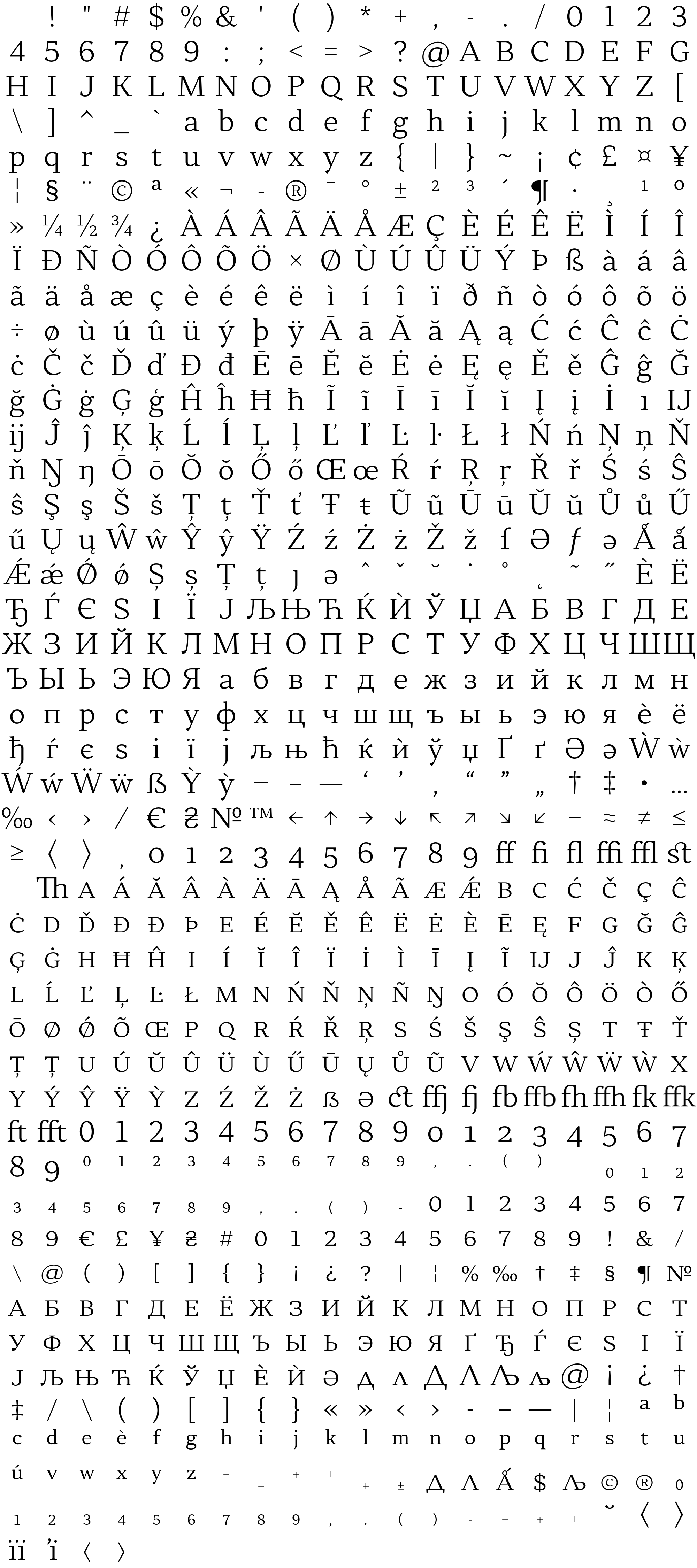 Due to the nature of thumbs' generation process, some of the glyphs in the glyph map may appear cropped.