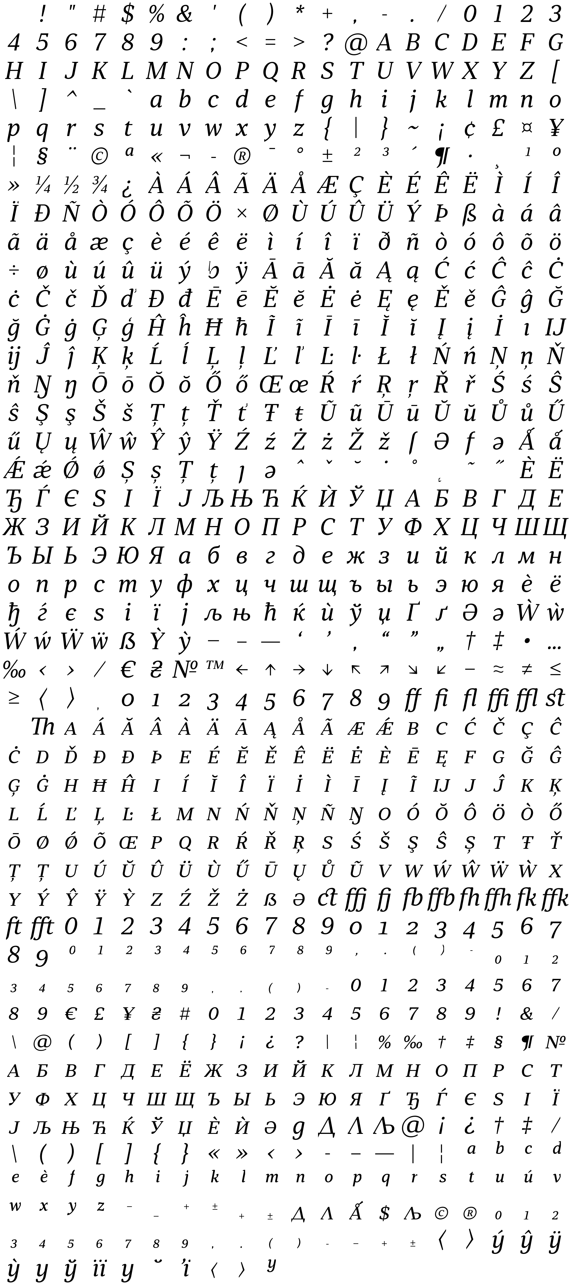 Due to the nature of thumbs' generation process, some of the glyphs in the glyph map may appear cropped.