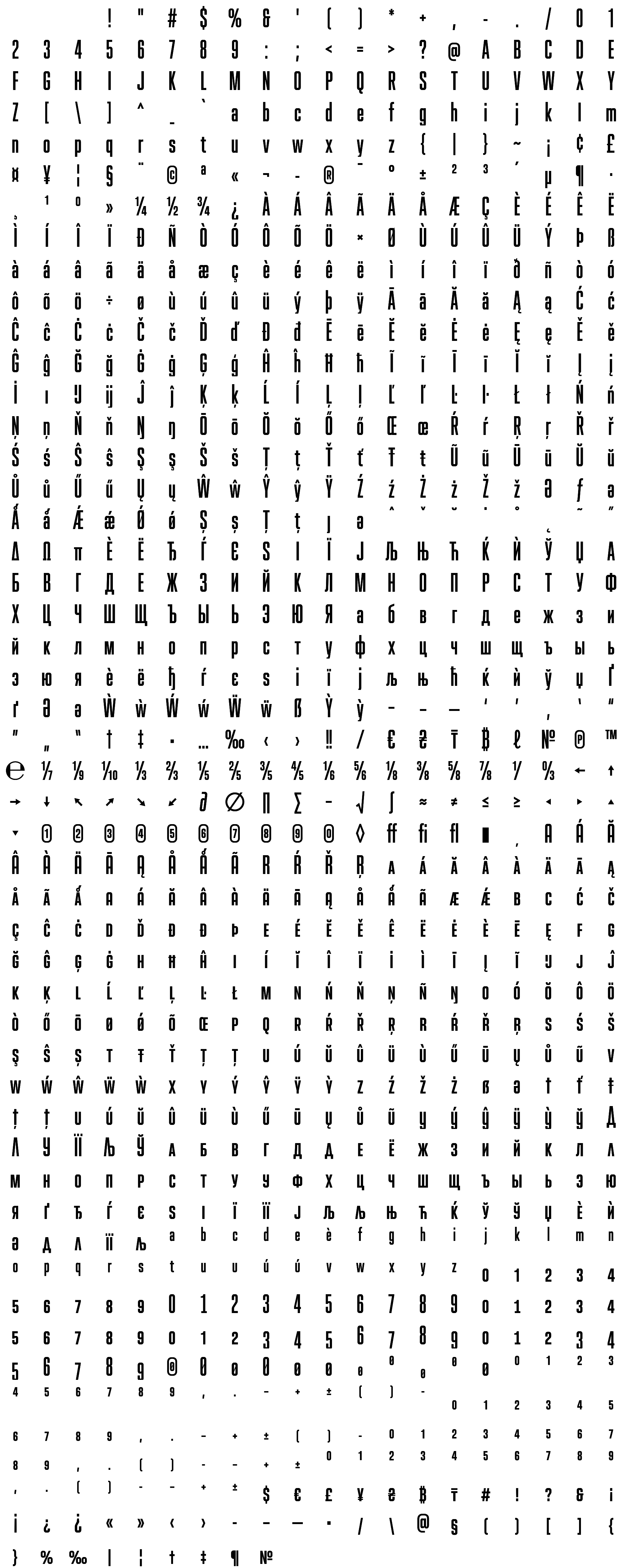 Due to the nature of thumbs' generation process, some of the glyphs in the glyph map may appear cropped.