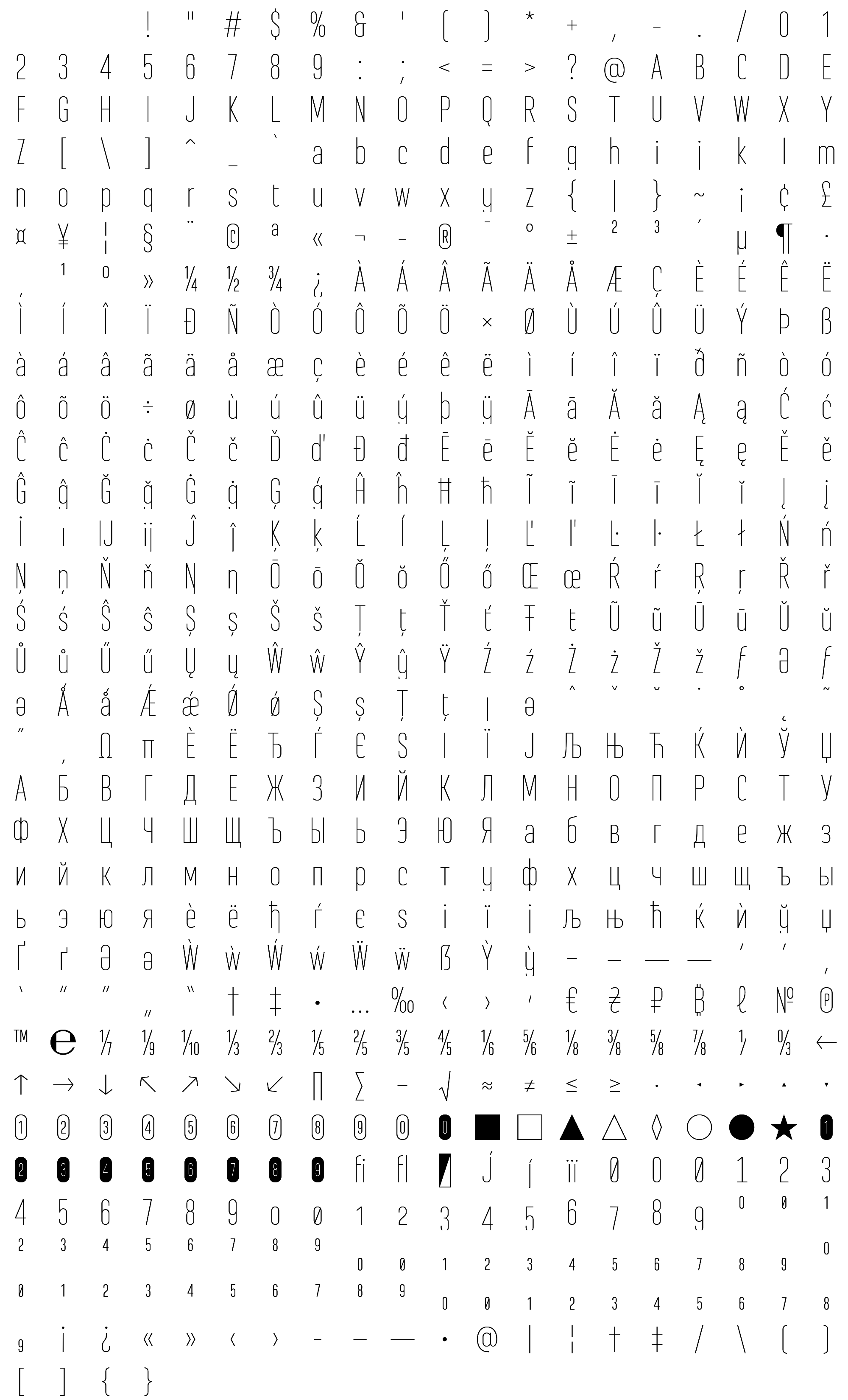 Due to the nature of thumbs' generation process, some of the glyphs in the glyph map may appear cropped.