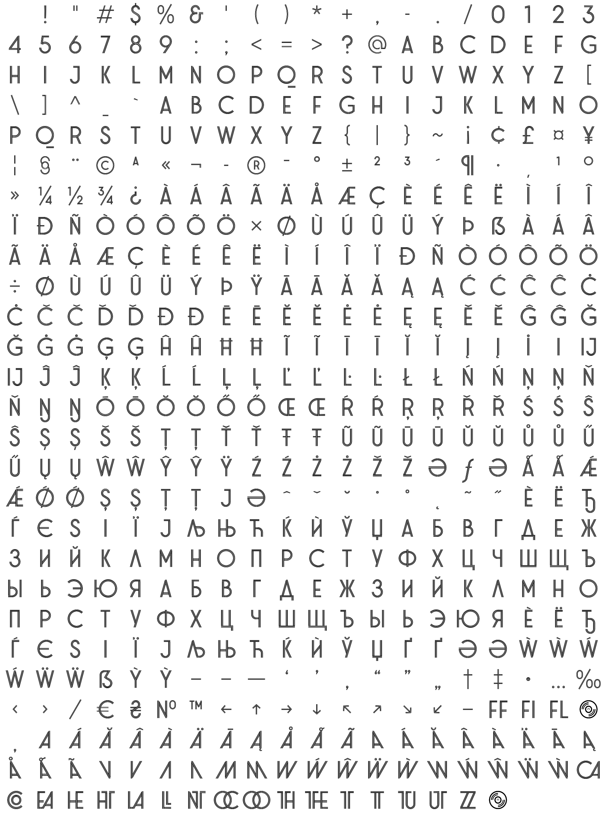 Due to the nature of thumbs' generation process, some of the glyphs in the glyph map may appear cropped.