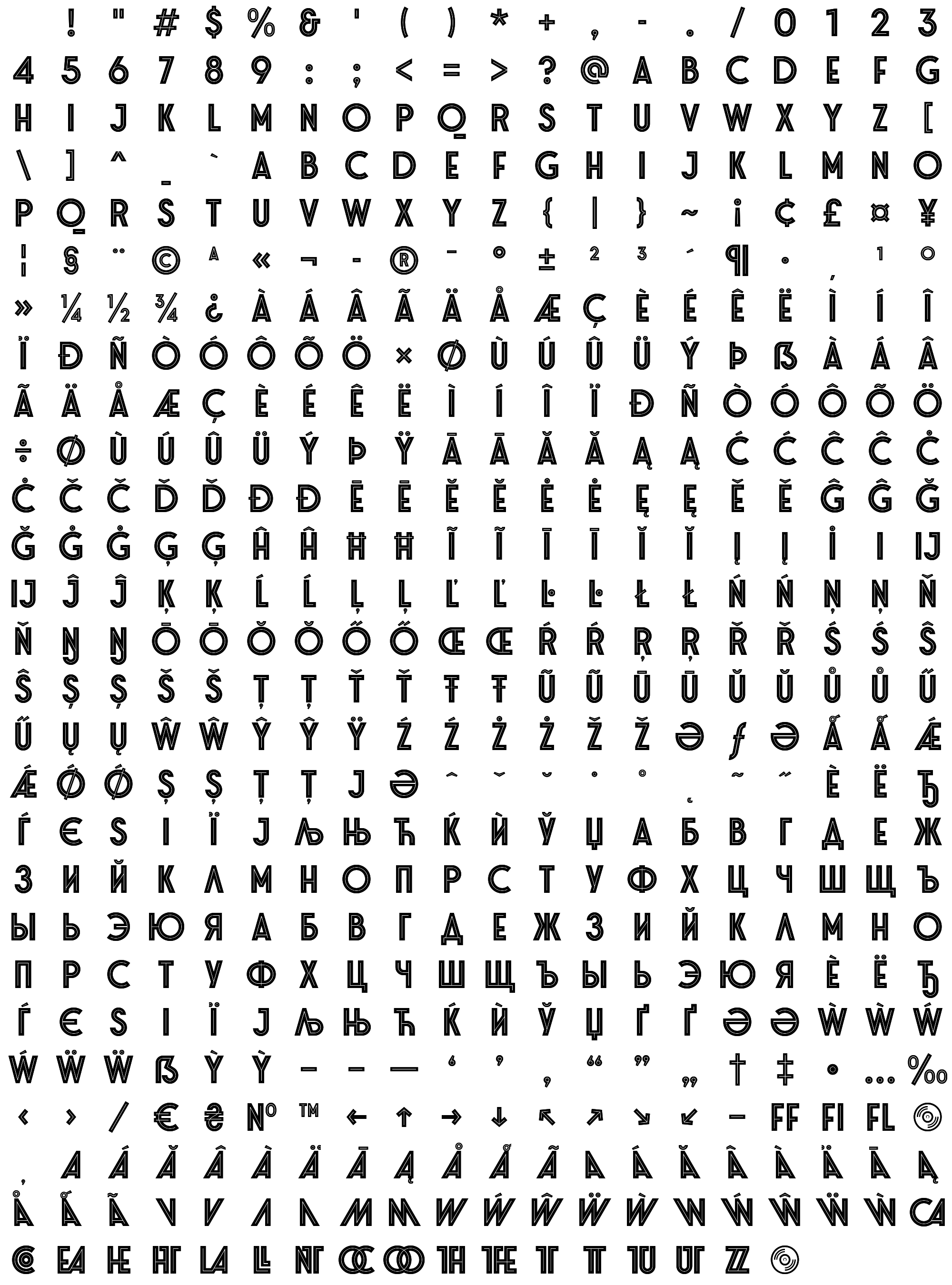 Due to the nature of thumbs' generation process, some of the glyphs in the glyph map may appear cropped.