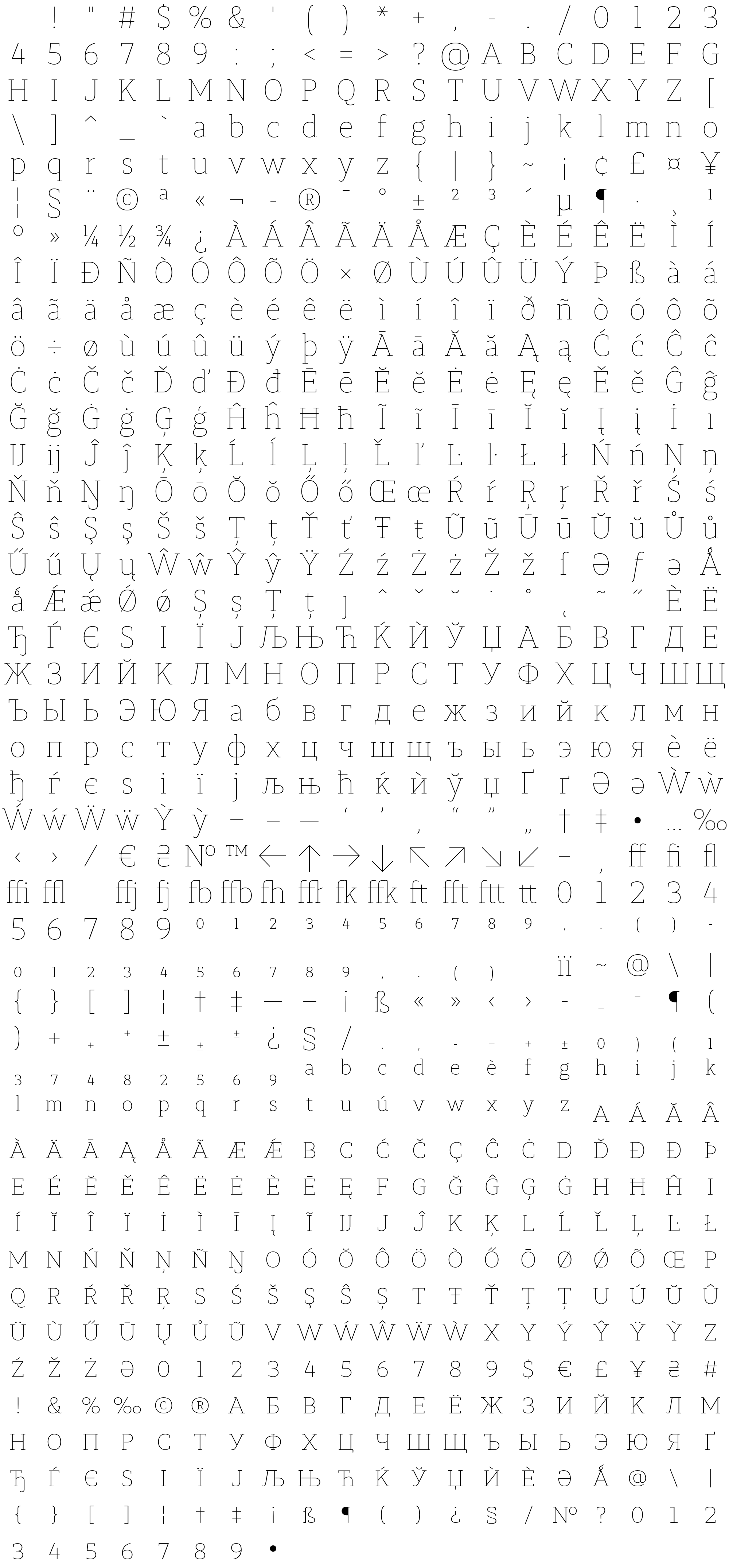 Due to the nature of thumbs' generation process, some of the glyphs in the glyph map may appear cropped.