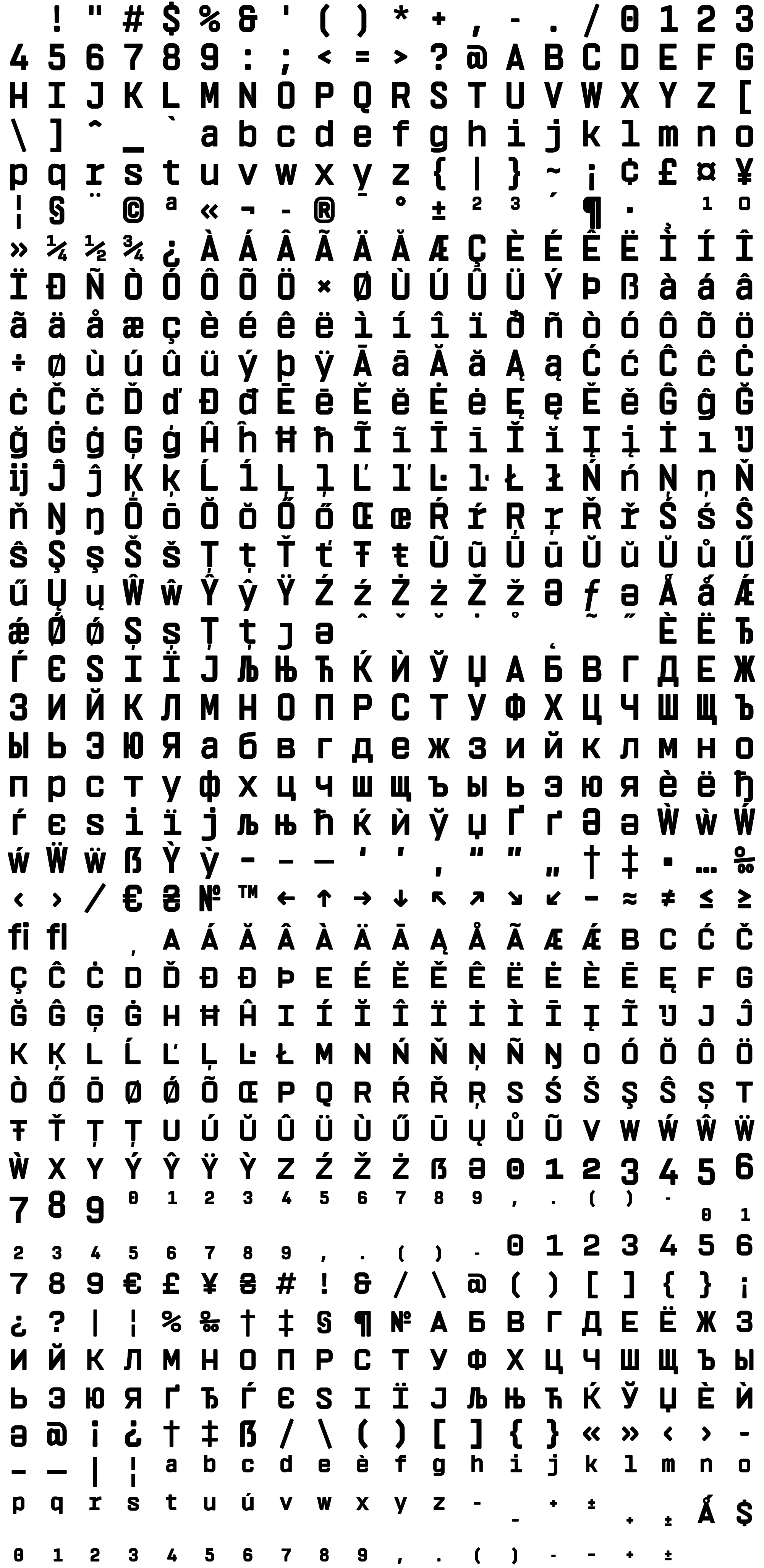 Due to the nature of thumbs' generation process, some of the glyphs in the glyph map may appear cropped.