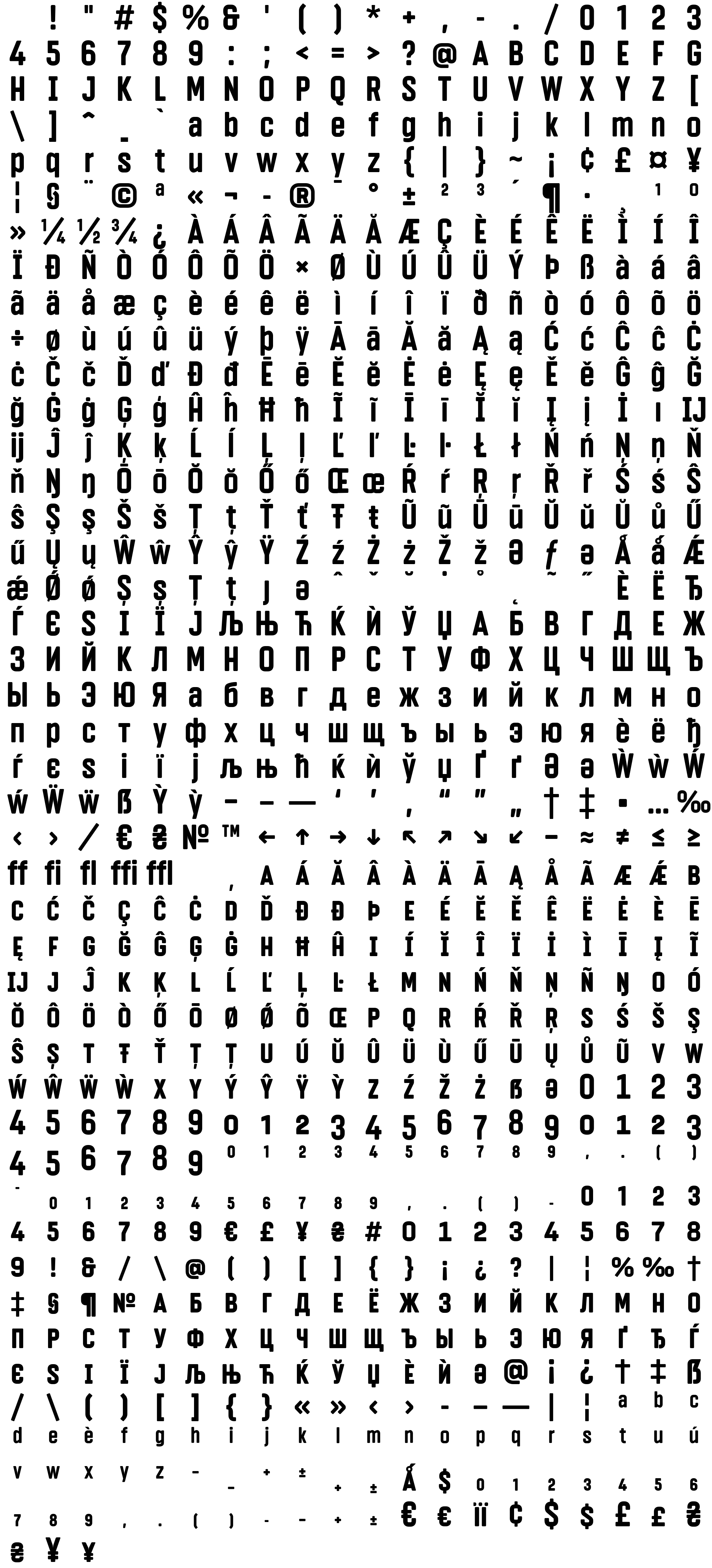 Due to the nature of thumbs' generation process, some of the glyphs in the glyph map may appear cropped.