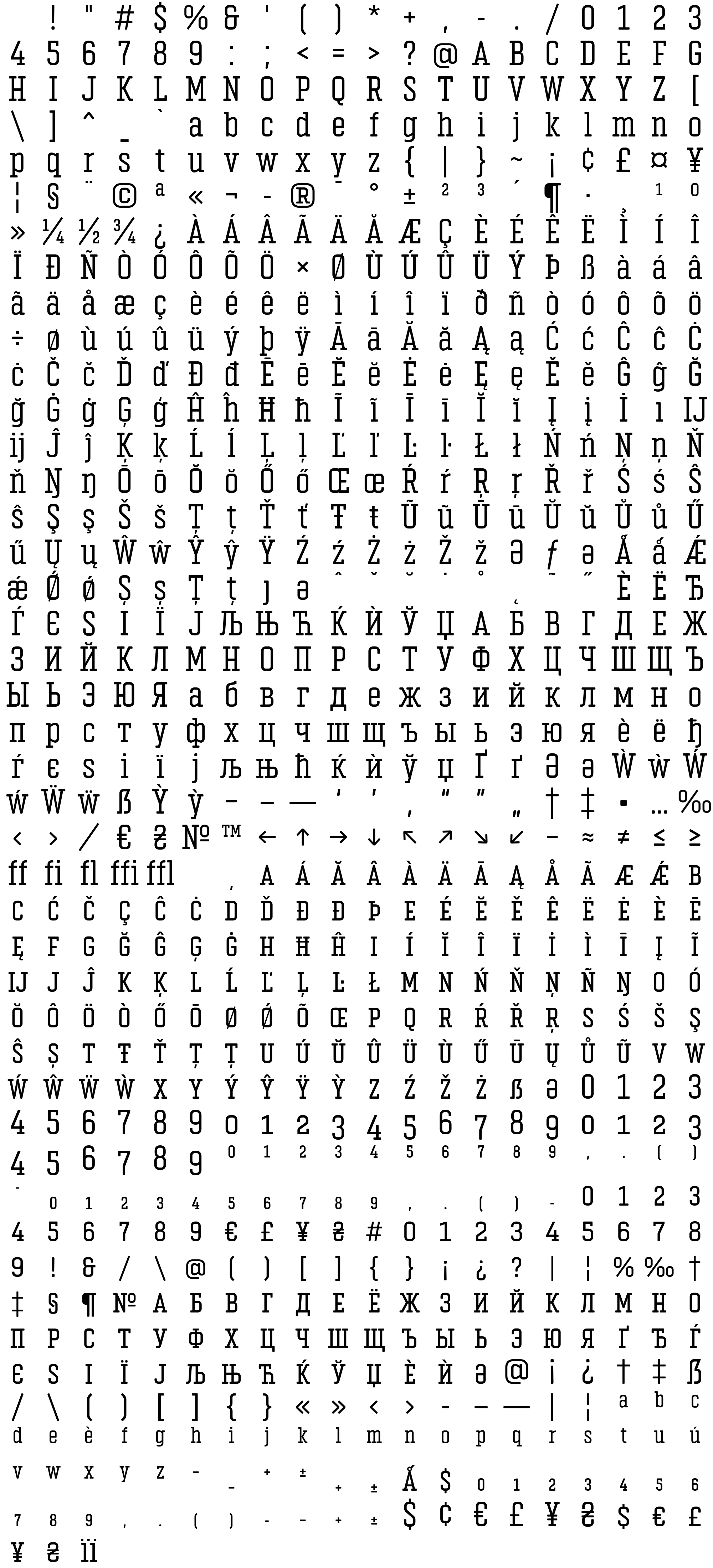 Due to the nature of thumbs' generation process, some of the glyphs in the glyph map may appear cropped.
